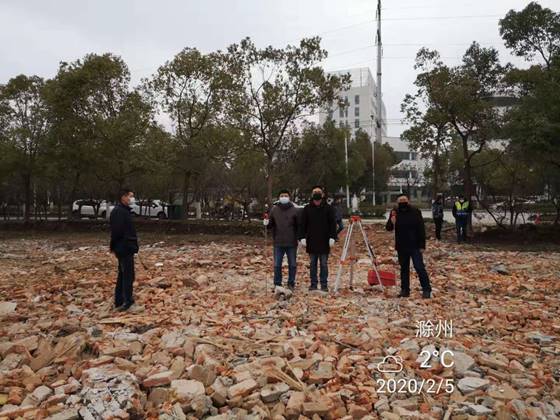 2月3日,我院再次接到市重點(diǎn)工程管理處的緊急任務(wù),由我院測(cè)量隊(duì)承擔(dān)市新型冠狀病毒肺炎定點(diǎn)收治備用醫(yī)院三期場(chǎng)地的地形圖及土方測(cè)繪工作。疫情就是命令,測(cè)量隊(duì)隊(duì)員們聞令而動(dòng),紛紛請(qǐng)戰(zhàn)。由副隊(duì)長(zhǎng)蔣蔚、主任工程師梁發(fā)軍帶領(lǐng)5名隊(duì)員,帶著測(cè)繪工具,不顧場(chǎng)地泥濘,于2月4日上午八點(diǎn)半準(zhǔn)時(shí)到達(dá)現(xiàn)場(chǎng),立即開(kāi)展工作,并于當(dāng)日完成了測(cè)量數(shù)據(jù)采集、傳輸、整理和制圖工作,為備用醫(yī)院三期建設(shè)提供了詳實(shí)的第一手基礎(chǔ)資料。